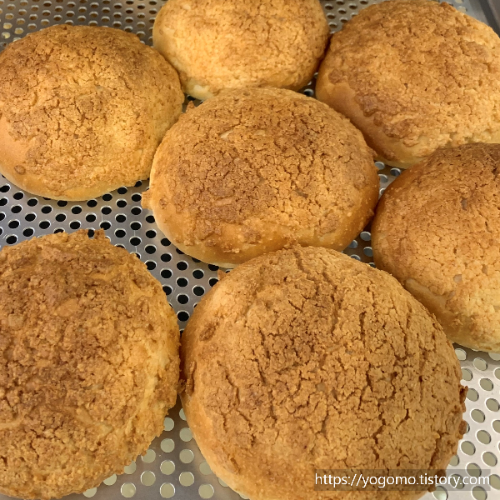 소보로 토핑이 가득 올라간소보로빵이 완성되었습니다. 구움 색도 먹음직스럽게 잘 나왔습니다.