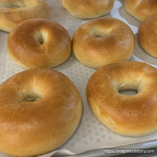 베이글 보관방법은 구매한 당일이나 다음날까지 먹을 예정이라면 작은 비닐봉지나 지퍼백에 하나씩 담아서 실온에서 보관하시면 됩니다. 좀 더 오래 보관하시려면 지퍼백에 담아 냉동보관하면 2주 정도 보관이 가능합니다. 냉동실에 넣을 때는 미리 반으로 잘라 보관하시는 것이 좋습니다. 냉동보관한 베이글은 실온에서 자연해동 15~20분 또는 전자레인지 30초 해동 후 오븐이나 에어프라이어에 5분 정도 구우시면 맛있게 드실 수 있습니다.