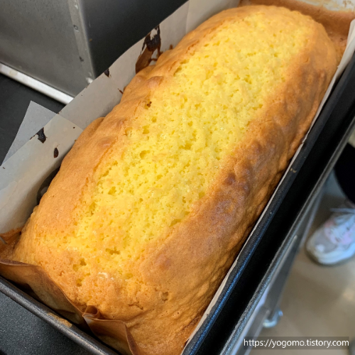 퐁신하고 밀도 높은 파운드케이크가 완성되었습니다.